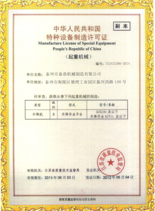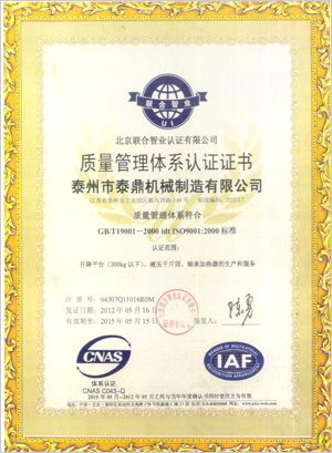 ☆ 質(zhì)量體系管理認(rèn)證 ☆ 特種設(shè)備許可證