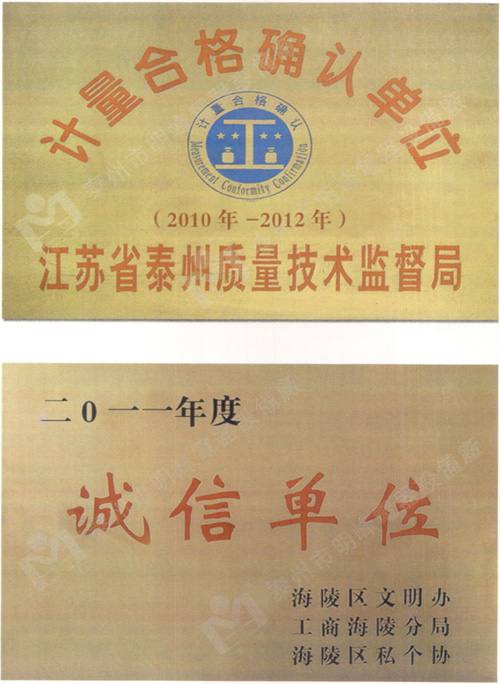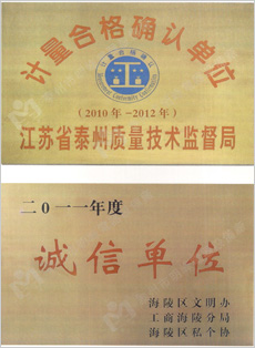 ☆ 計(jì)量合格證 ☆ 企業(yè)誠信企業(yè)